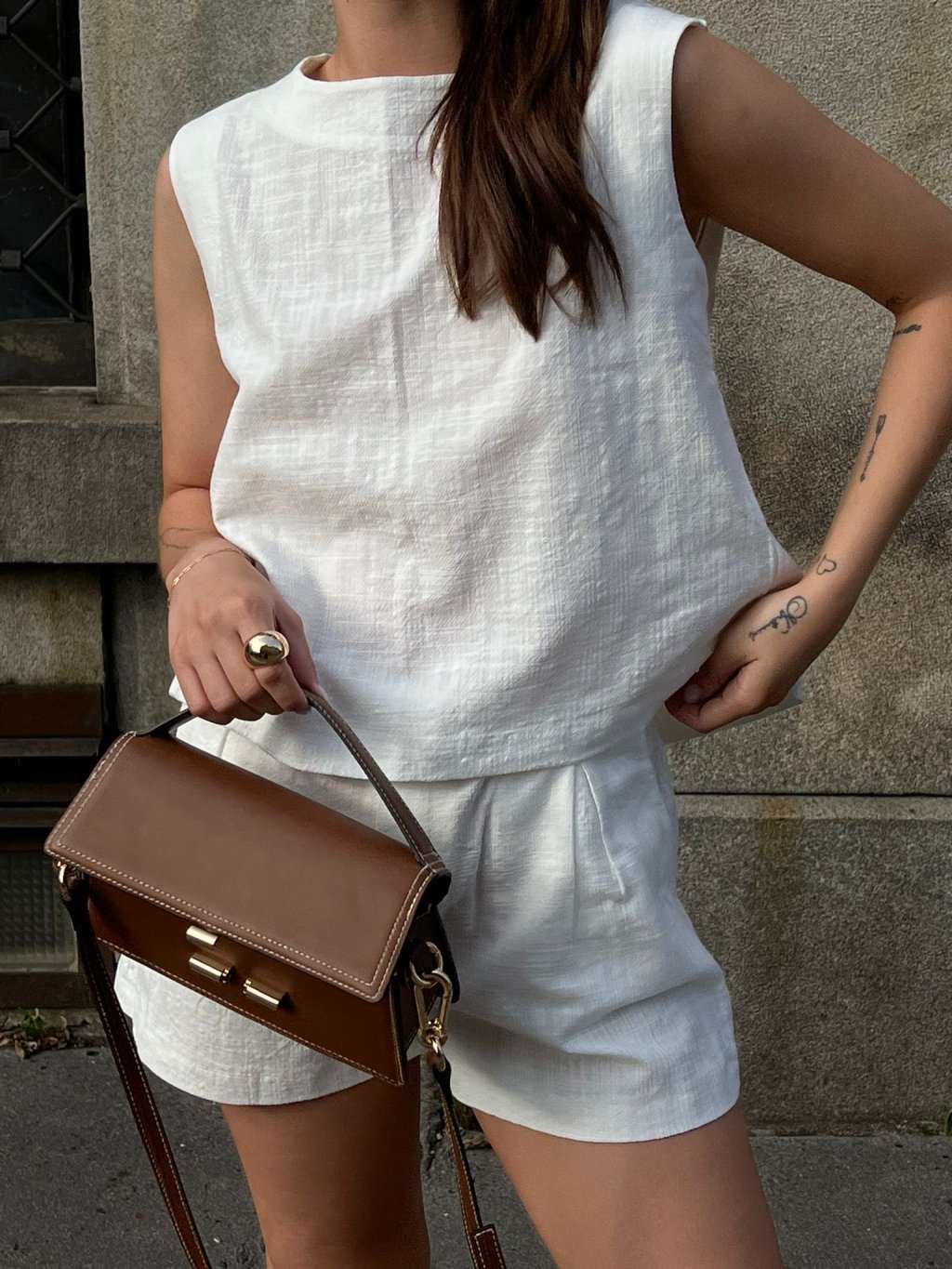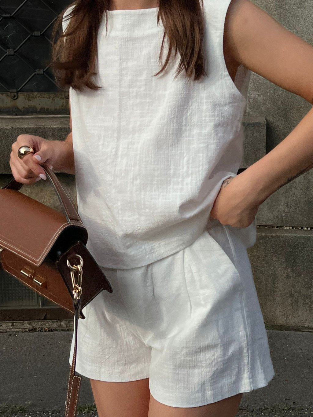 Bavlněný komplet - šortky a top WHITE